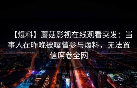 深夜爆料突袭:蘑菇影视的“内幕”风波 昨晚,当大多数网友正沉浸在周末的休闲时光中,一条突如其来的爆料...