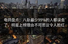 电鸽盘点:八卦最少99%的人都误会了,明星上榜理由不可思议令人脸红 在娱乐圈中,总有一些明星的光鲜亮...