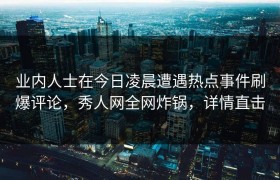 业内人士在今日凌晨遭遇热点事件刷爆评论,秀人网全网炸锅,详情直击