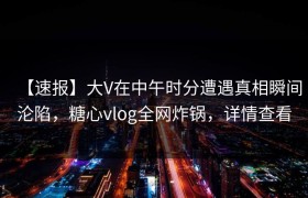 【速报】大V在中午时分遭遇真相瞬间沦陷,糖心vlog全网炸锅,详情查看