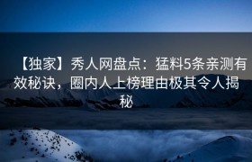 揭秘秀人圈—“猛料”五大秘诀实测真效 在充满竞争的秀人圈子中,想要脱颖而出,不单是外在的颜值和才华,...