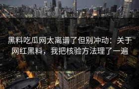 标题:黑料吃瓜网太离谱了但别冲动:关于网红黑料,我把核验方法理了一遍 在当今的互联网时代,网红和网络...