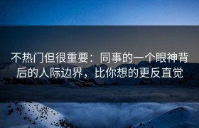 不热门但很重要:同事的一个眼神背后的人际边界,比你想的更反直觉 引言 在职场里,眼神看似微不...